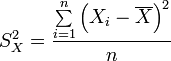 La desviación estándar se define como la raiz cuadrada de la varianza, una fórmula para la varianza es esta: